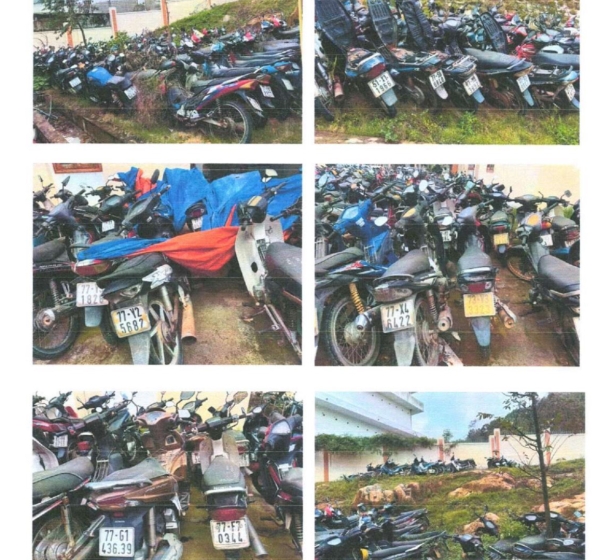 490 xe mô tô, gắn máy. Hiện trạng: Phế liệu; Tài sản đấu giá phải thực hiện đục, mài số máy, số khung, cắt sườn xẻ thành hai phần