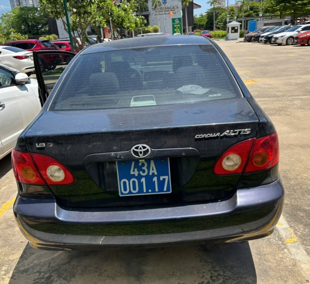 Tài sản 05: 01 (một) xe ô tô đã qua sử dụng nhãn hiệu TOYOTA; số loại: COROLLAALTISZZE122LG, biển kiểm soát số: 43A-001.17; số chỗ ngồi: 05 chỗ; màu sơn: Xanh; năm/nước sản xuất: 2002/Việt Nam; số khung: ZZE122-7501009; số máy: 1ZZ-0926784 theo Giấy Chứng nhận đăng ký xe ô tô số 020730 do Phòng Cảnh sát giao thông Công an thành phố Đà Nẵng cấp ngày 29/03/2016 đứng tên TT PT NGUỒN NHÂN LỰC CL CAO TP ĐN.